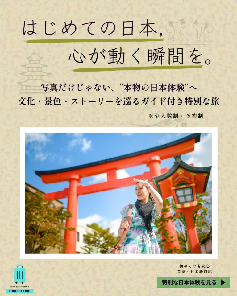 数多くあるバナーから日本文化・旅行に関心のある層の関心をひくキャッチフレーズの考案しました。背景に和柄を入れ安心する雰囲気を演出し、スマートフォンでも情報収集する方向けに視線の流れでしっかり情報を得れるように工夫をしました。